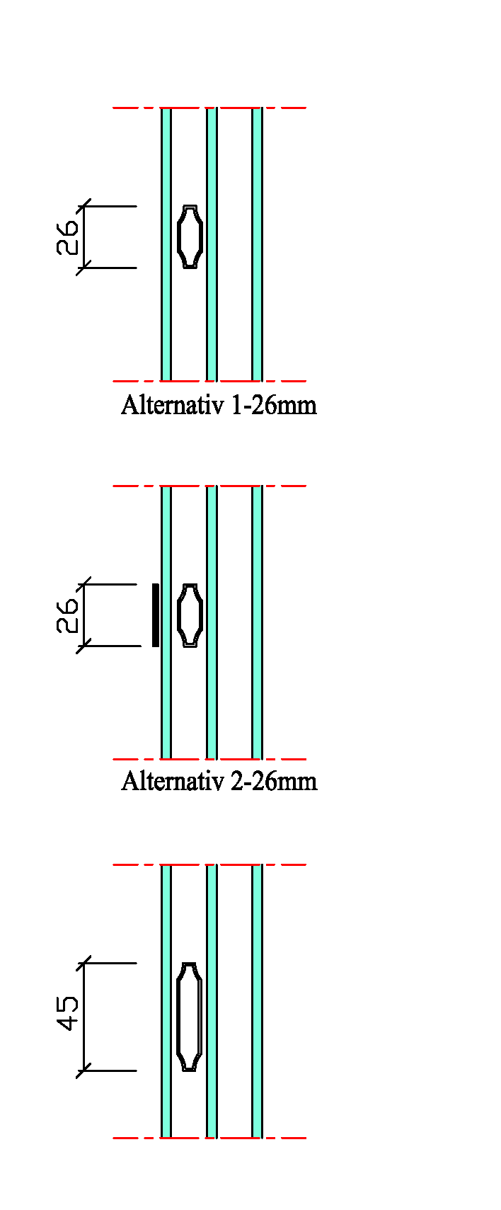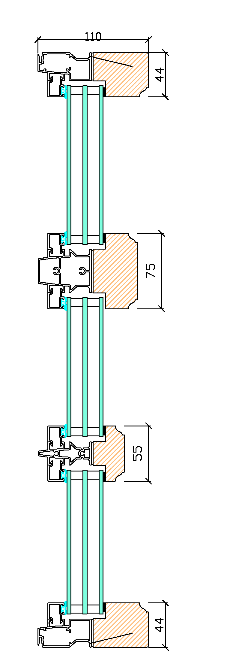 Fast 3-glas fönster, Trä/alu – Profilsnitt