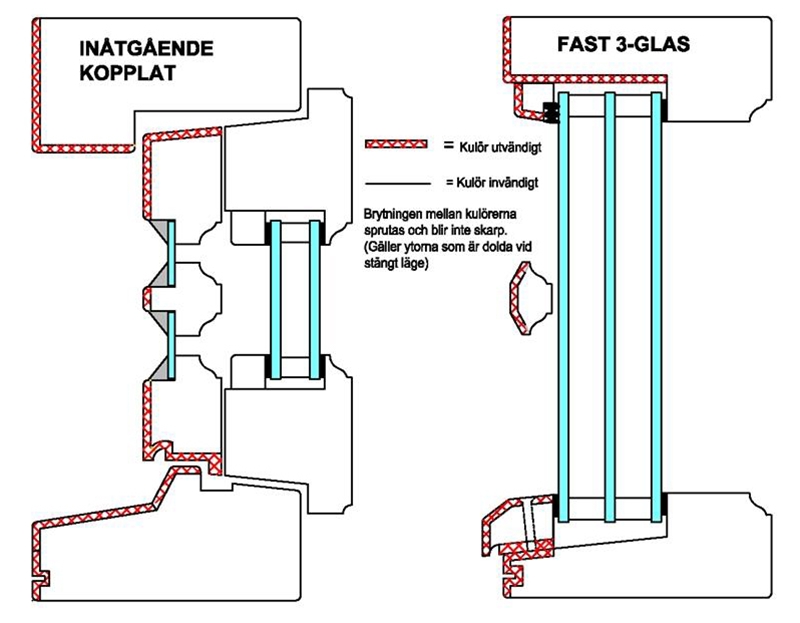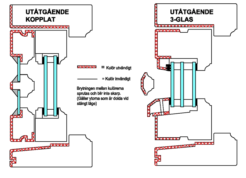 Kulör invändigt inkl. ytterbåge+spröjs inåt/utvändigt annan kulör.
