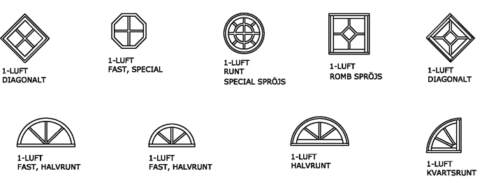 RM fönster tillverkar alla typer av specialfönster både runda, halvrunda, sneda och bågformade efter kundens önskemål och ritning. Utförandet passar väl ihop med våra övriga allmogefönster och kunden själv väljer om det ska vara fast eller öppningsbart. Viss skillnad är det på fast och öppningsbart då det är olika konstruktioner men alla våra har en allmogeprofil på insidan. Öppningsbara tillverkas som inåtgående, utåtgående eller som pivåfönster (svängt på mitten). Hos oss är inget omöjligt, kontakta våra säljare för bästa utförande beroende på typ av form. Som alla våra produkter så är även specialfönstret ett äkta träfönster. Utförande gällande beslag/profiler kan skilja från vårat standardsortiment på grund av fönstret/dörrens konstruktion/form.