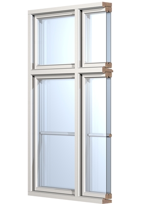 RM´s Allmogefönster är ett träfönster i kopplat 1+1 (2-glas) efter gammal profilstandard med tunn kittad spröjs och profiler, detta medför maximalt ljusinsläpp.Allmogefönstret har en fin allmogeprofil på insidan på båge karm och spröjs.