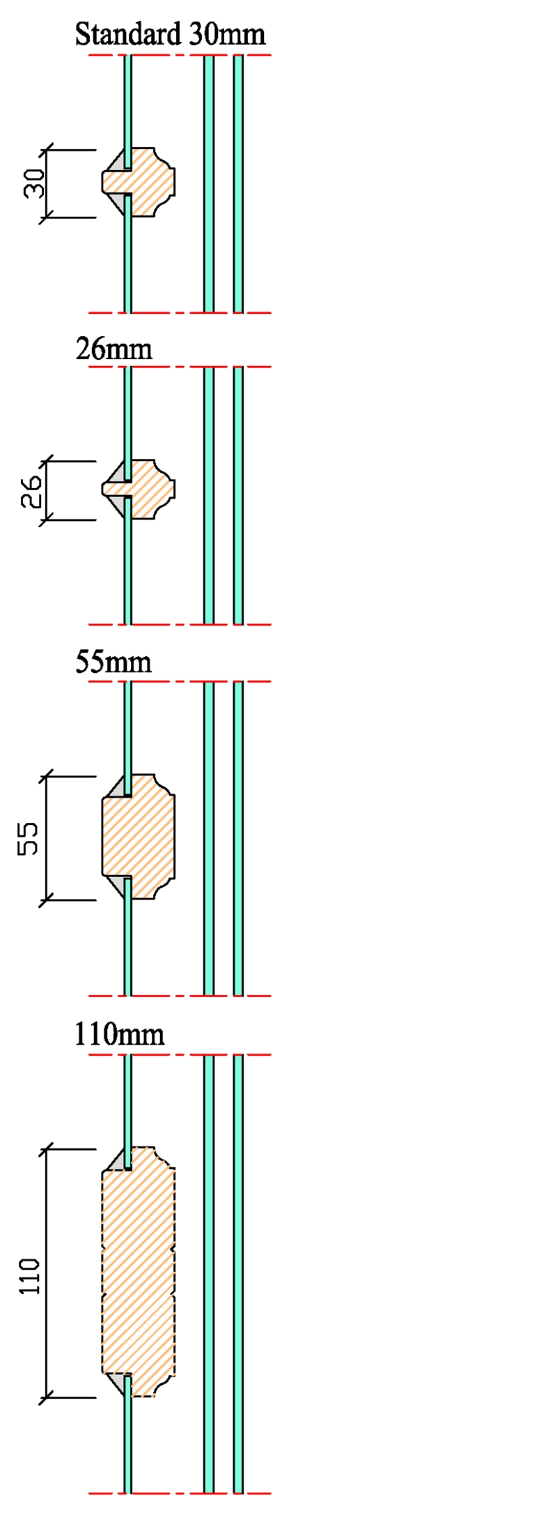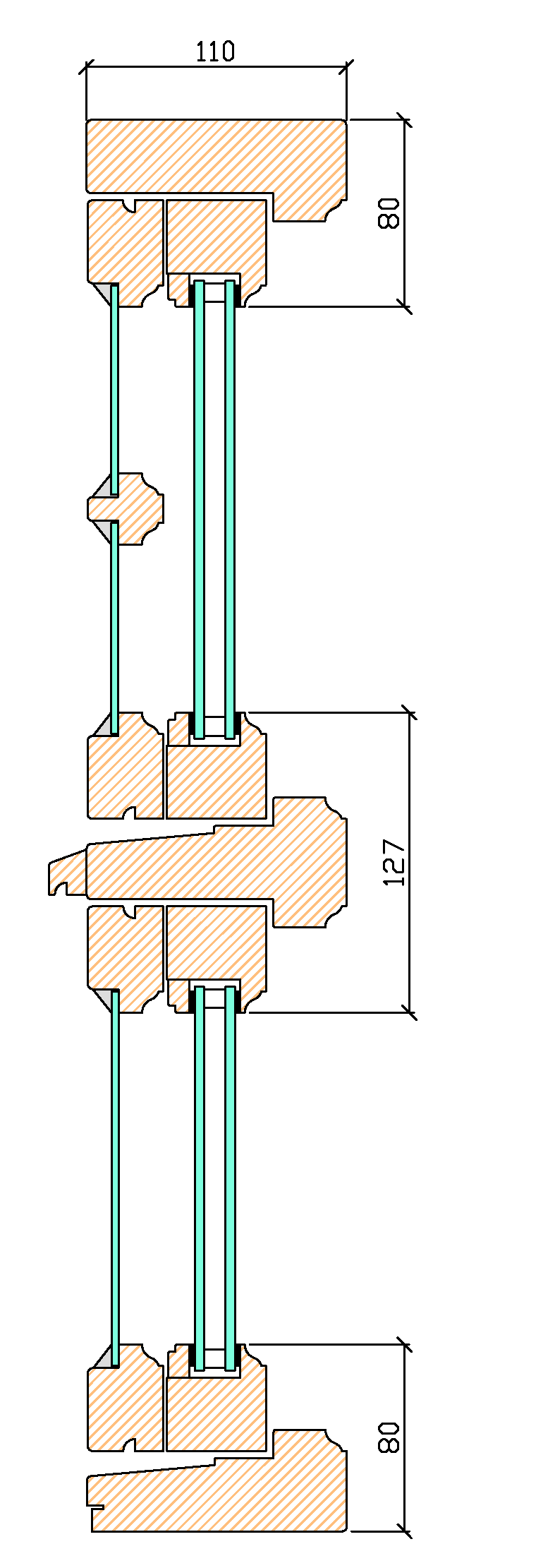 Utåtgående fönster 2+1 – Profilsnitt