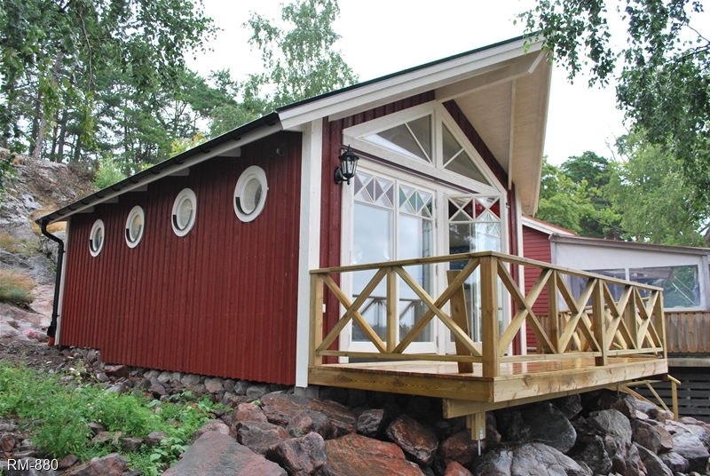 Ett arkitektritat gästhus  som klarar dom nya måtten som ett Attefallshus kräver, kunden har valt specialfönster för att öppna upp maximalt ljusinsläpp från söder samt små runda på långsidan.