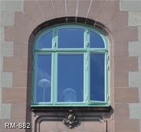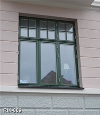 Ett bågformat fönster finns också på huset som vi tillverkat efter gamla fönstrets modell och indelningar, leveransen från oss är vitmålad invändigt och en grön kulör utvändigt som kunden själv valt.
