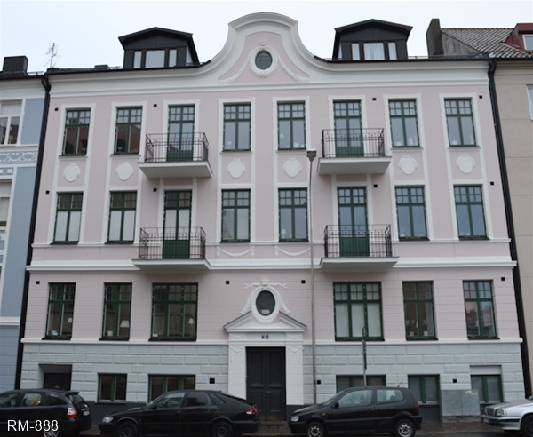 På Aschebergsgatan 8 i Helsingborg har vi fått levererat alla fönster som tillverkats efter dom gamla förlagorna. Det är vårat utåtgående kopplade 2+1 fönster som levererats i grön kulör enligt BRF egna färgkod. Här ses hala fasaden mot gatan med fönster och balkongdörrar. Montering och projektering har BHK Teknik utfört.