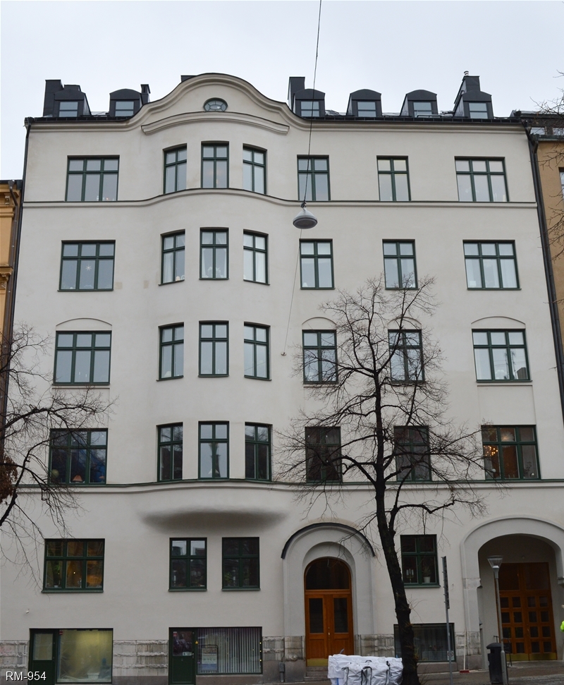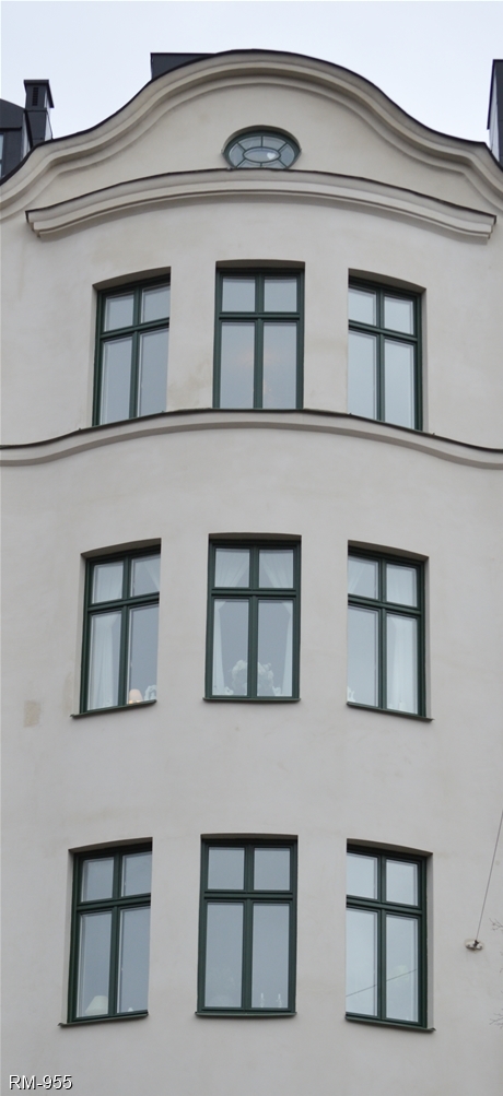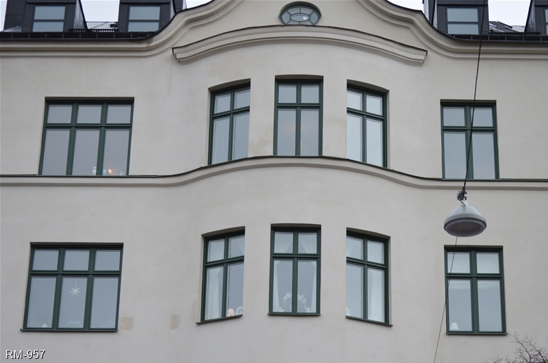 I Vasastan i Stockholm har vi på Odengatan 6 levererat alla fönster mot gatan, det är med vårat inåtgående kopplade trä/aluminiumfönster. Här ser ni hela fasaden med 4-luftfönster ( flaggfönster) med separata öppningsbara överljus , likt originalet. Fönstret är levererade med invändig vit kulör och utvändig grön, allt för att passa in på Odengatans vackra fasader.