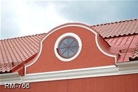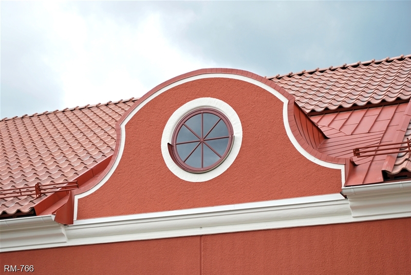 Kupa eller frontespis med två större fönster som har en bredare spröjs i överkant som är kittade. I nocken sitter även ett litet ljusinsläpp i form av ett runt fast fönster.