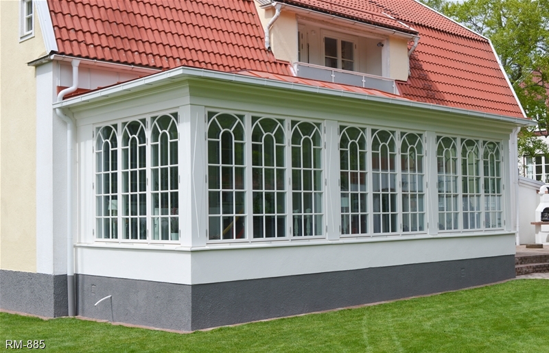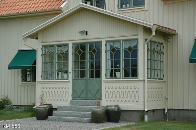 Verandor gör huset mycket vackrare , om man gör den harmonisk med övriga huset och ser till att få rätt propotioner på glas & spröjs, här är en typisk punchveranda med mycket spröjs och med färgade glas i överkant.