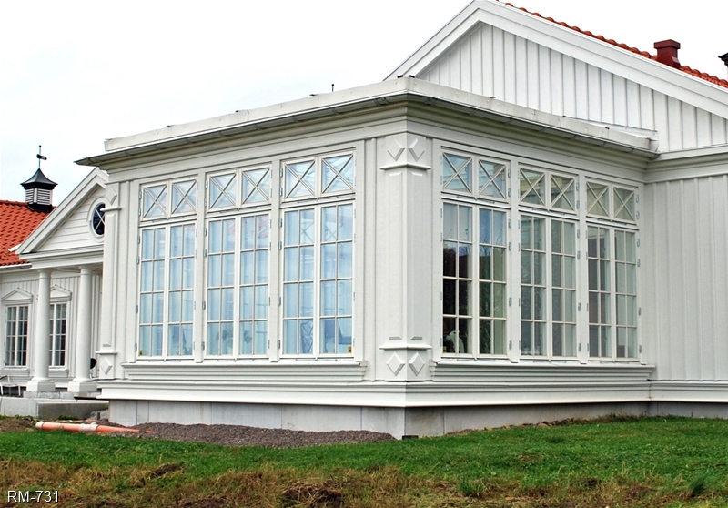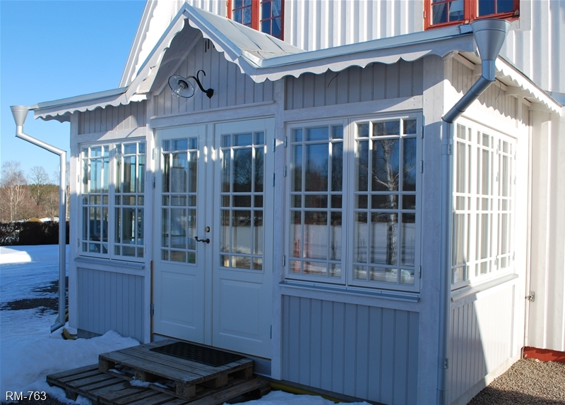 En lyxig fin veranda med vackra fönster och fin snickarglädje!