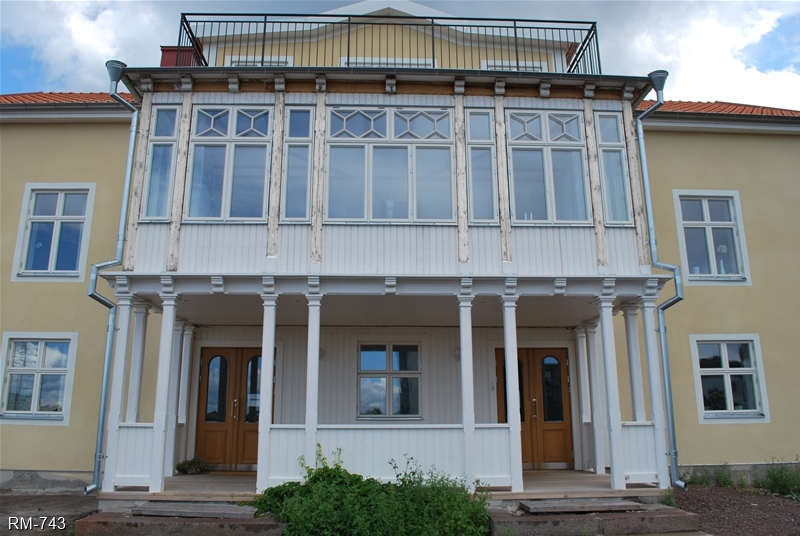 Vacker inglasad veranda efter gamla förlagor för att behålla samma genuina stil som huset hade från början. Huset ligger på Varvsholmen i Kalmar.