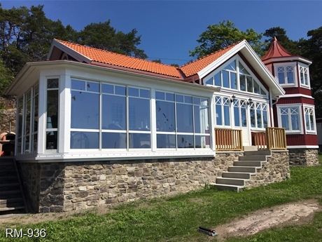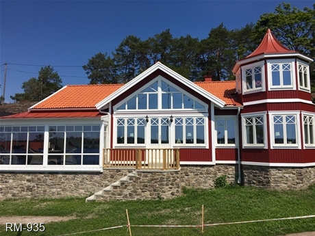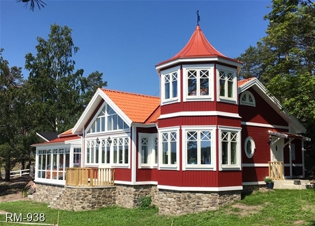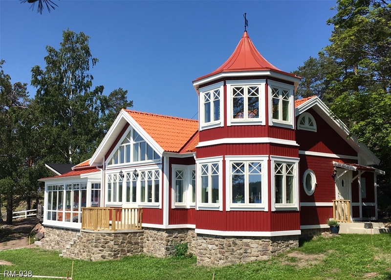 En fönsterleverans av våra vackra utåtgående trä/aluminumfönster till detta hus med ett torn. Även om man tittar noga så kan man inte se att det är en utsida av aluminium, precis vad vi vill. Vårat trä/aluminiumfönster är utvecklat och designat för att även kunna monteras i gamla hus utan att förstöra den gamla looken. Här tycker vi att vi har lyckats.