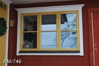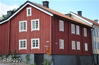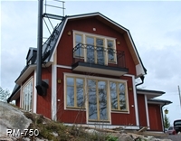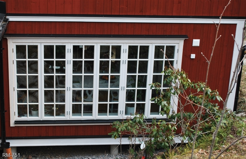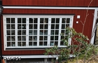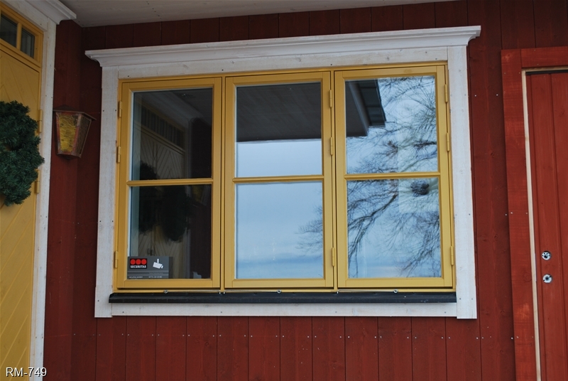 Ett gammalt trähus med nya RM fönster som väl passar in i den gamla byggnaden. Utåtgående kopplade 2-luftsfönster med kittad spröjs.