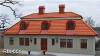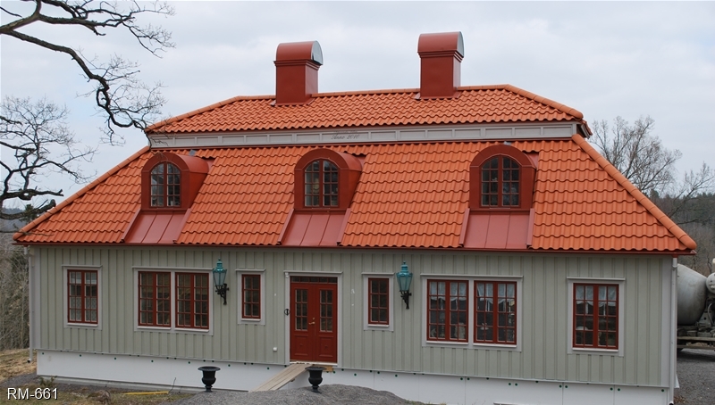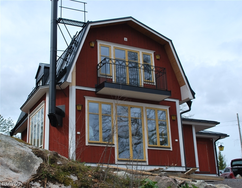 Nybyggd " Herrgård " i gammal stil, fönster med äkta kittad spröjs från RM fönster gör byggnaden genuin. Takkuporna med bågformade fönster gör huset vackert. Ytterdörren passar också in med dom gamla profilerna från oss.